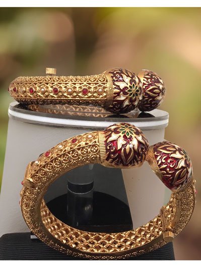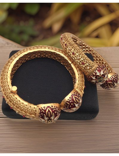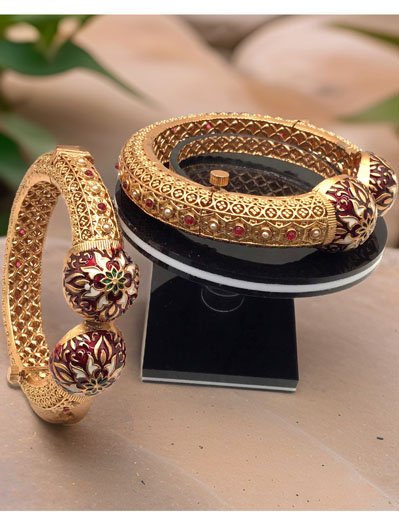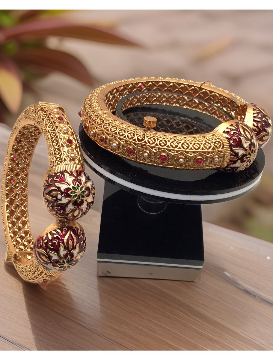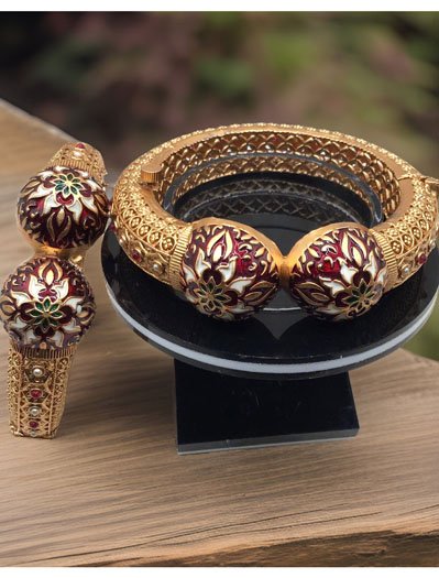 Rajasthani traditional culture inspired Matt Gold Finish Kada with beautiful Meenakari work