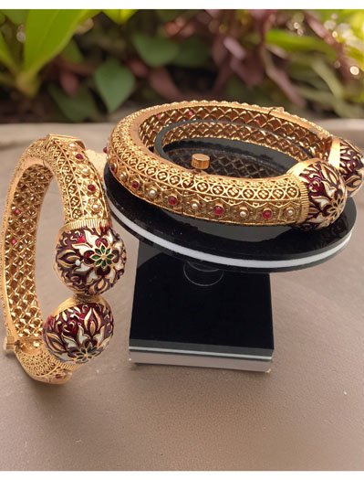 Our Indian jewelry ethnic kadas showcase timeless beauty, capturing the essence of tradition in every detail. Explore the allure of our authentic Rajasthani culture inspired kada, where heritage meets modernity. Embrace the legacy of fine craftsmanship with our traditional bangles, a celebration of Indian artistry that transcends time. The Look Is Stunning And Preciously Suitable for all Kinds of festivals/wedding/celebrations!
