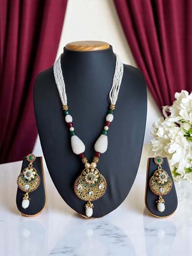 Matte Gold Finish Rajwadi Necklace Set
