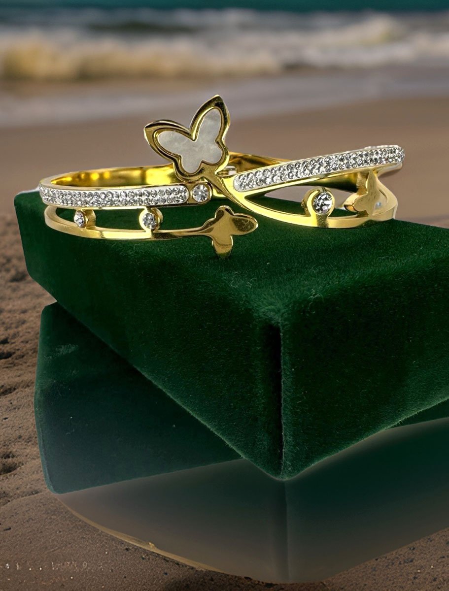 MOP Butterfly 18k Gold Polish Charm Bracelet