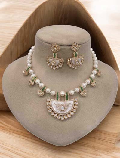 The Mother of Pearl Designer Necklace is a stylish, elegant, luxury accessory. Absolutely gorgeous, feminine & romantic, tasteful but eye-catching! For a trendy statement, a modern flower motif is presented in this beautiful necklace. Timeless, feminine, and graceful jewelry. Add a pair of matching earrings to create an elegant ensemble. The Necklace sits comfortably on the neckline, enhancing your natural beauty and adding a glamorous touch to your ensemble. This is the perfect necklace for many occasions and would be a fantastic present!