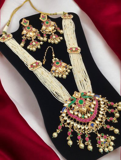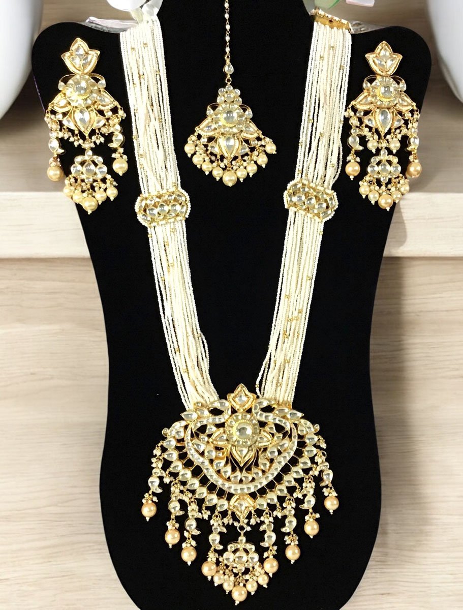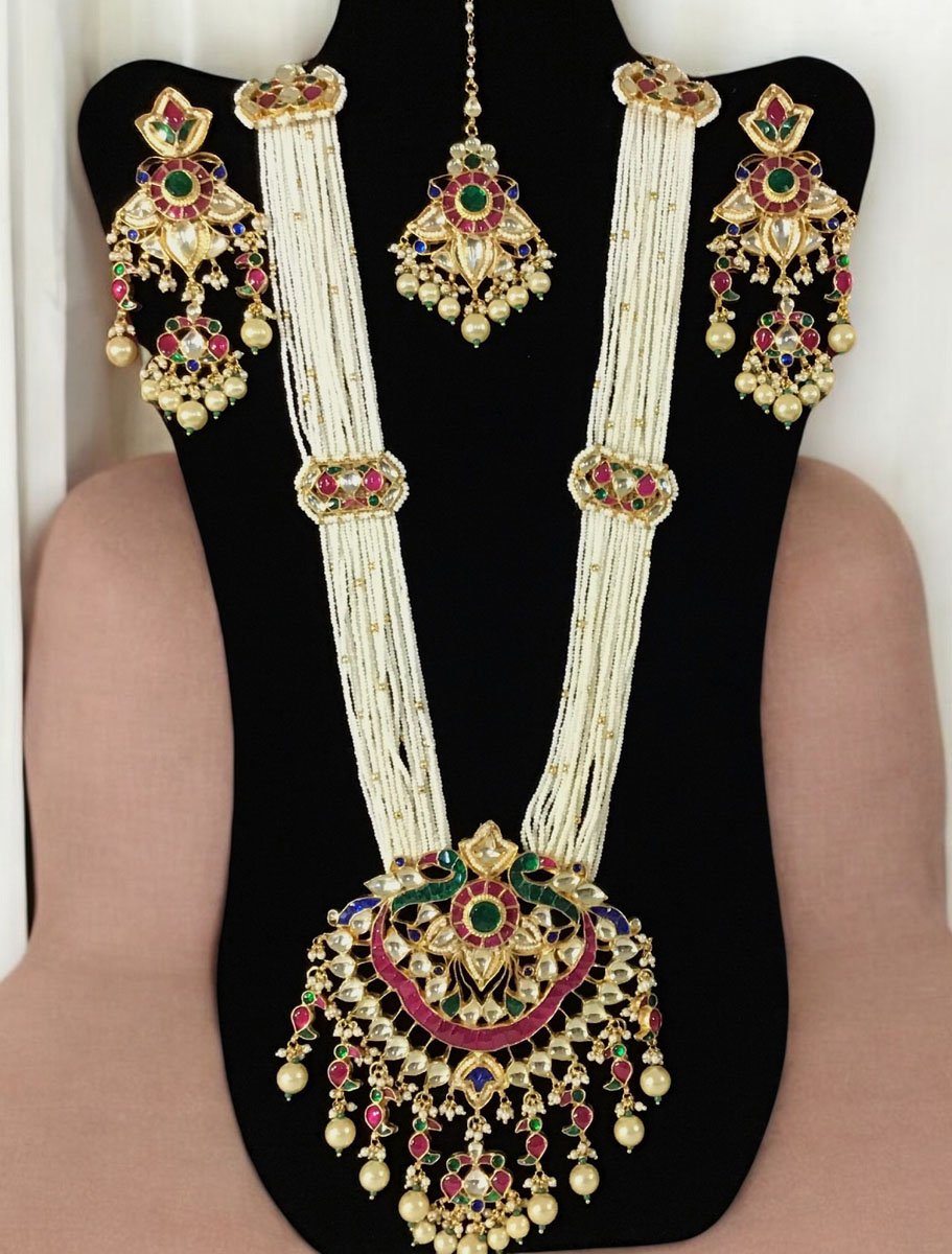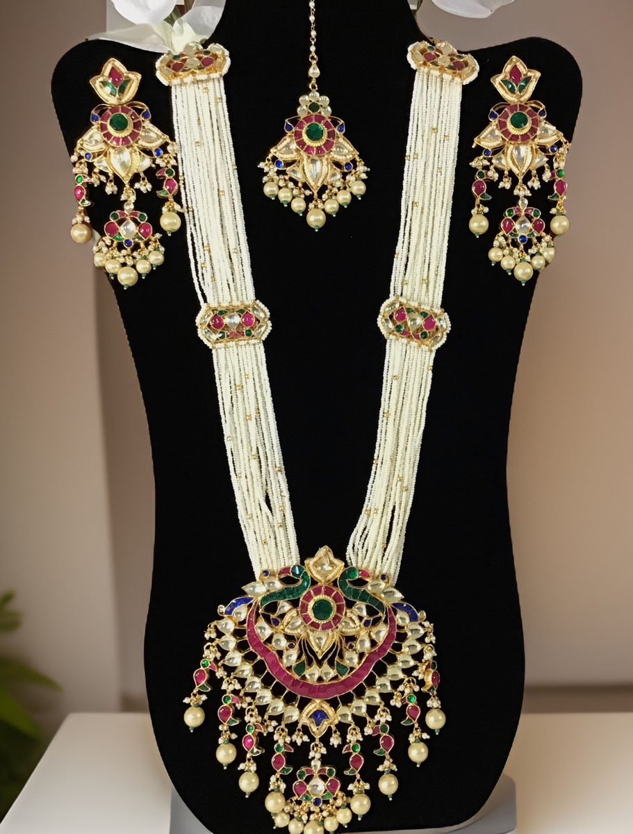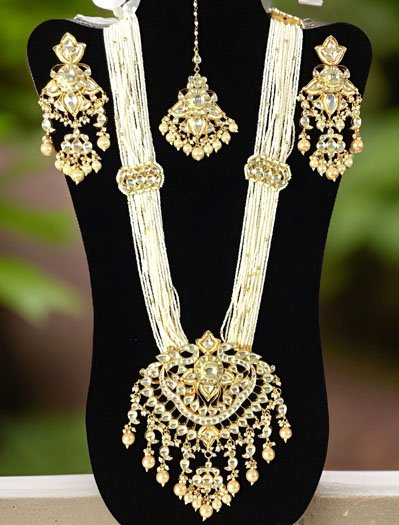 Pachi Kundan Long Rani Haar Pendant Set with Maangtikka