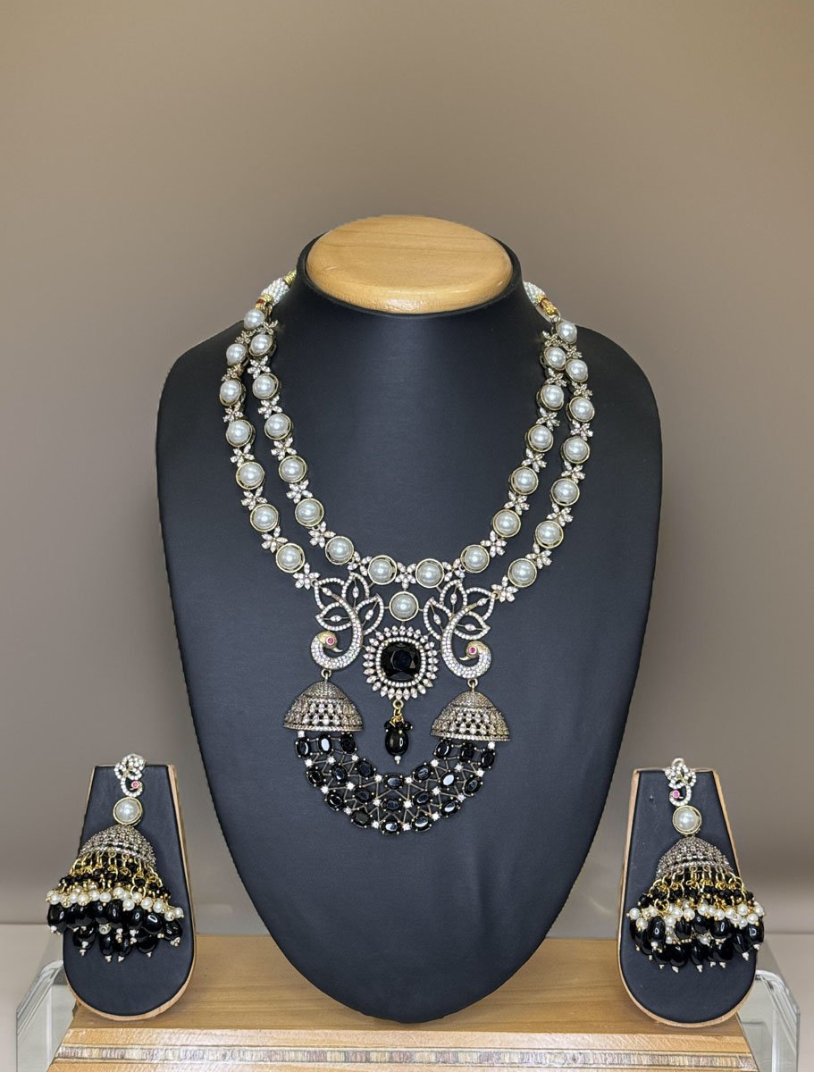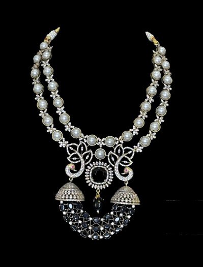 Gorgeous Bollywood Diva Inspired Peacock Carved CZ Pearl Necklace Set