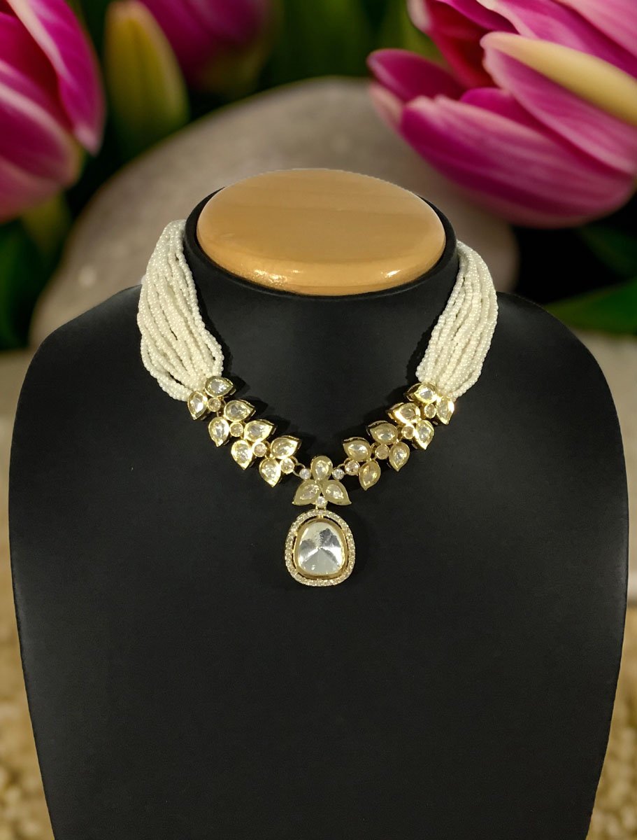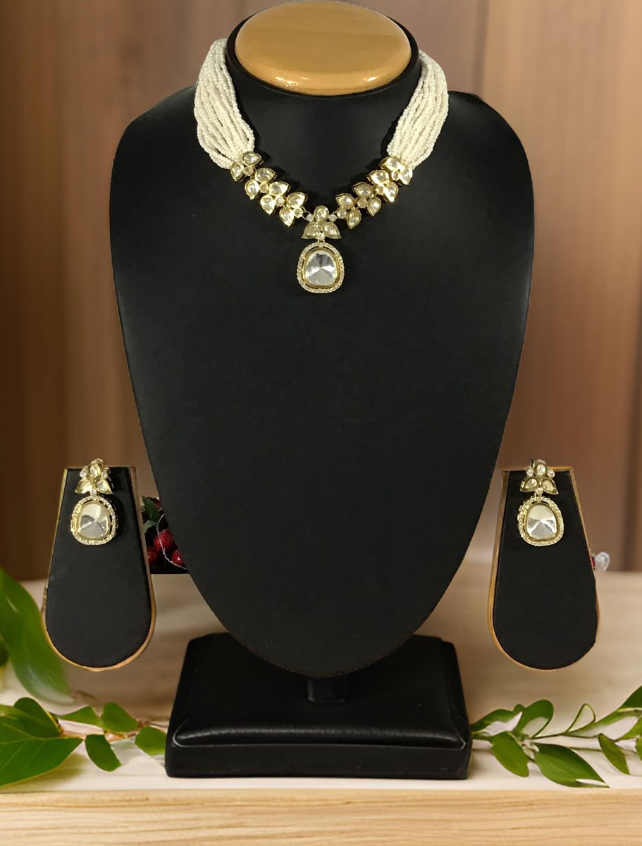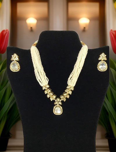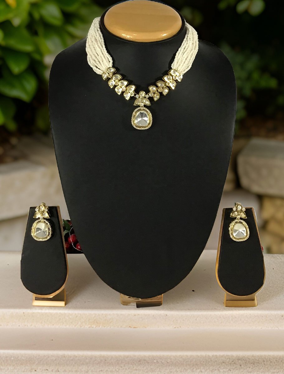 This Elegant Kundan choker set is crafted with the finest quality Kundan stones and pearl beads. Showcase a mesmerizing look with this Pleasing Kundan jewelry set on any occasion. Perfect for any type of occasions and celebrations. This compliments the best for the ones who prefers delicate yet classy look!