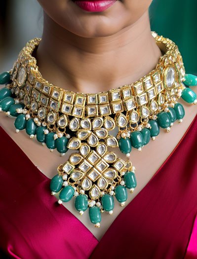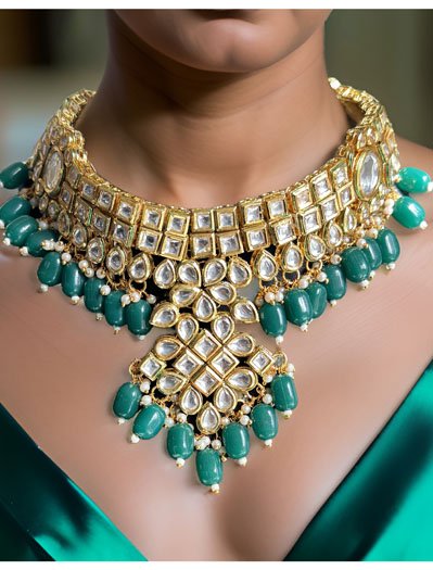 Premium Kundan choker set with green onyx beads