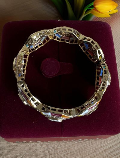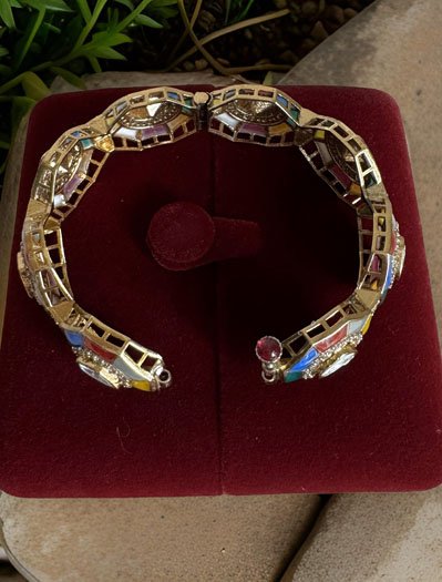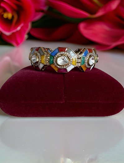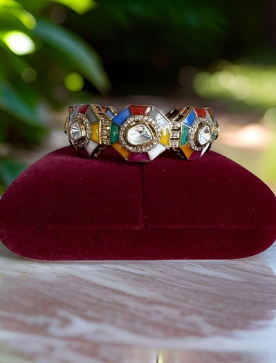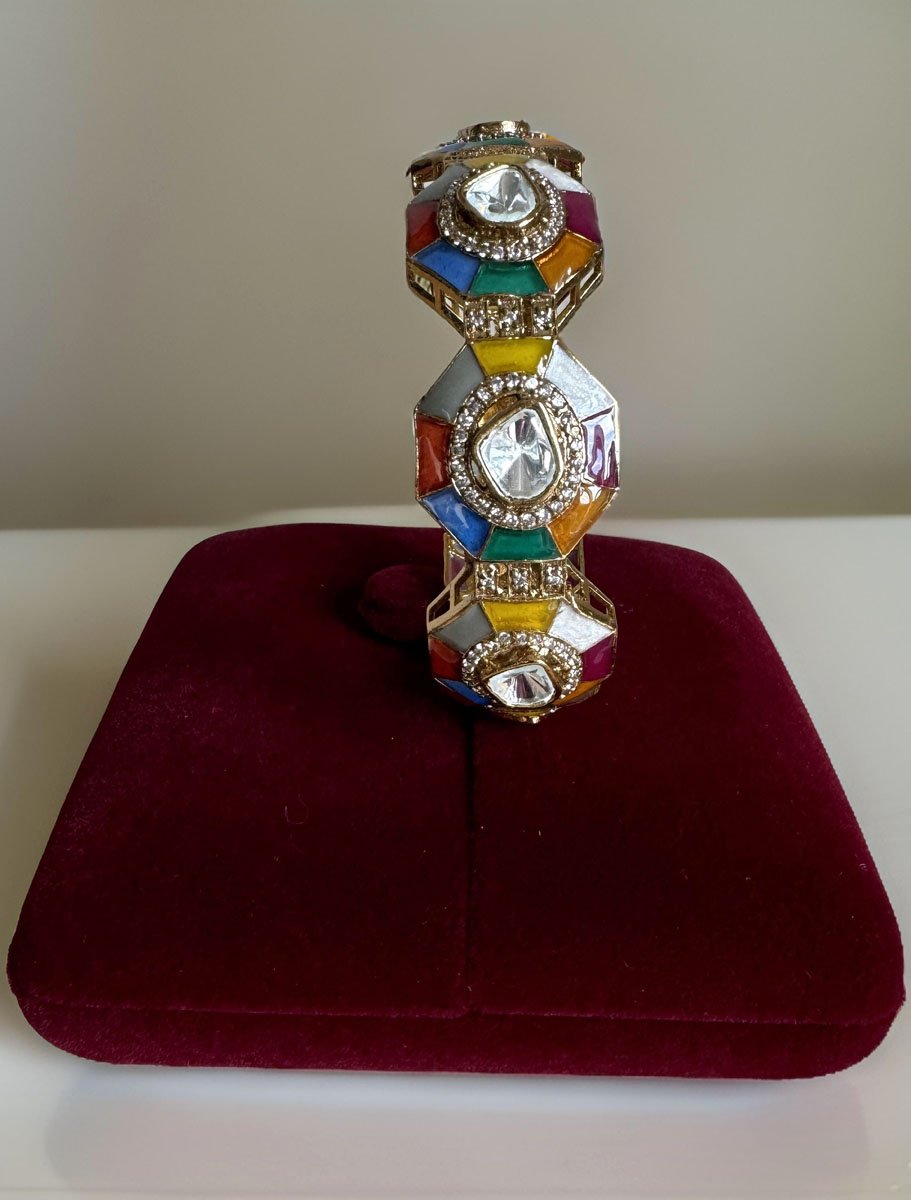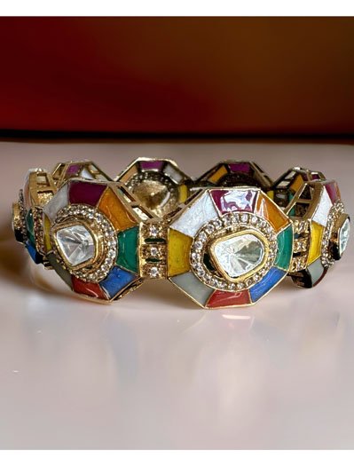 Premium Kundan Rainbow Enamled Golden Bracelet