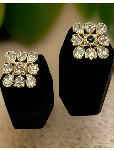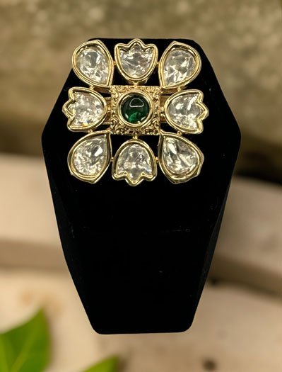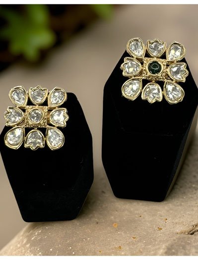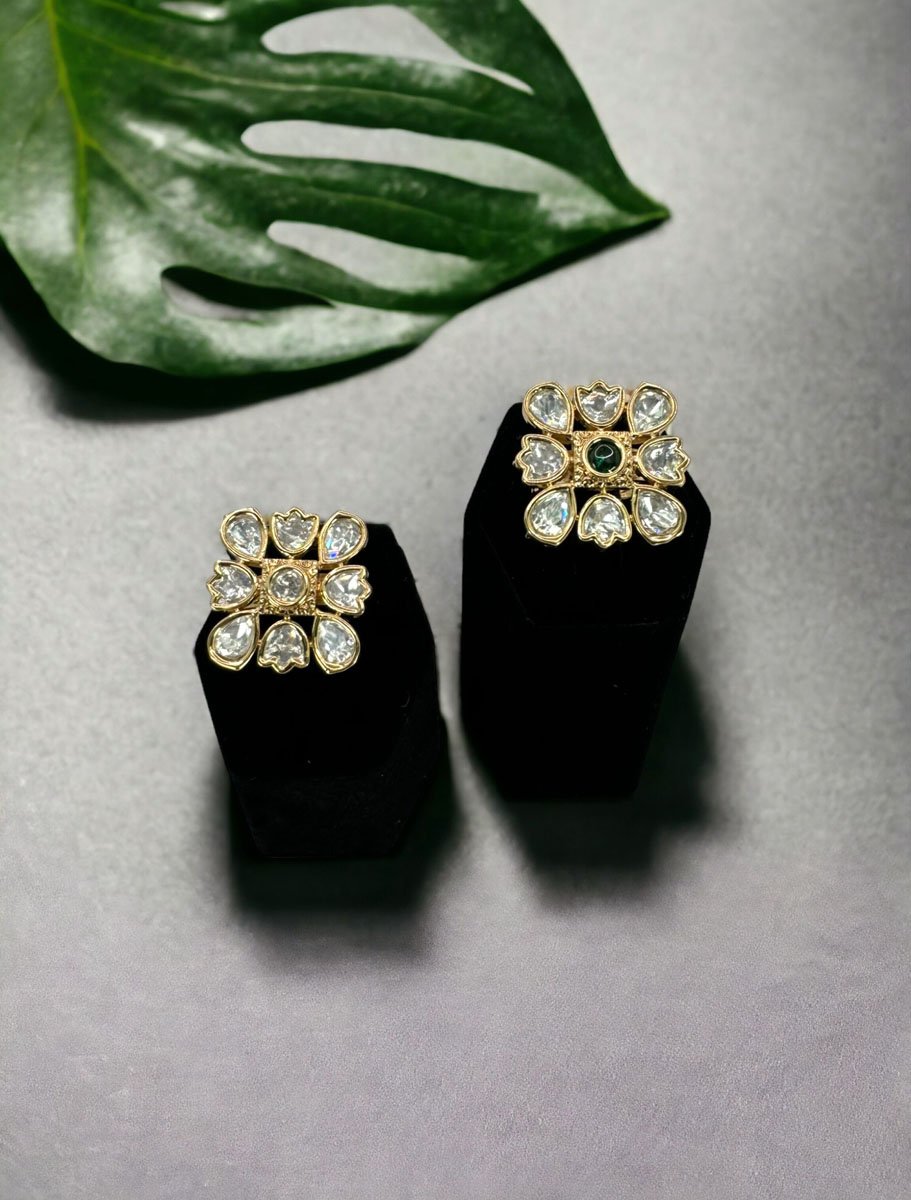 Rajwadi Kundan Square Adjustable Finger Ring