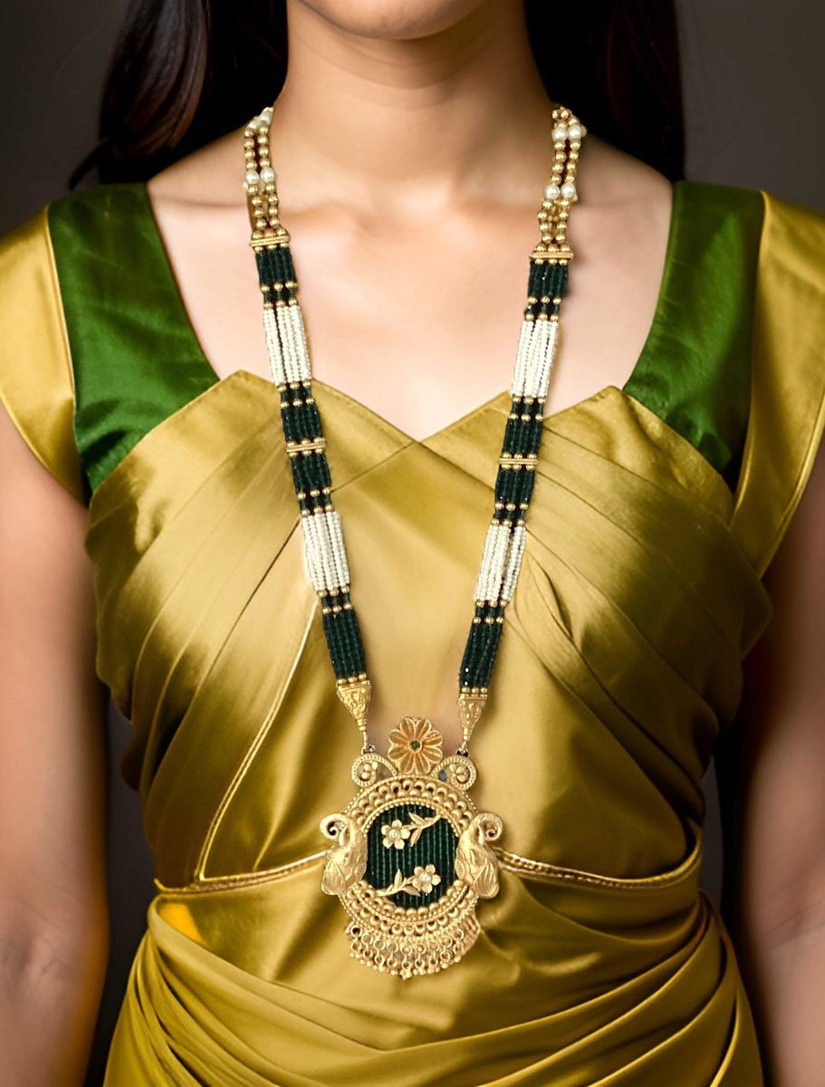 Polki Set with Emerald Elephant pendant and matching earrings Base Metal: Brass