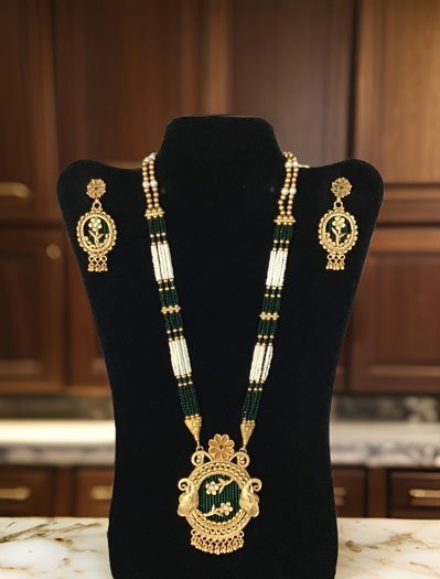 Dimension: 11" long necklace w/ 3" x 2.5" pendant and 3" long earrings