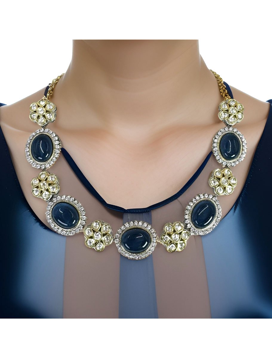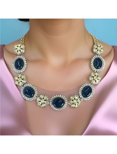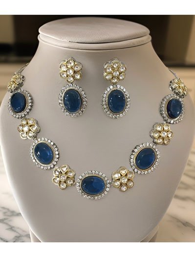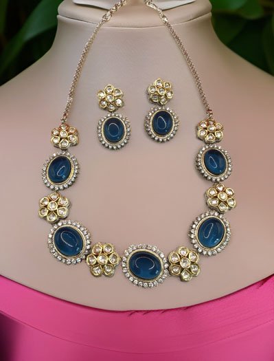Real Kundan with Blue Monalisa Stones Necklace Set