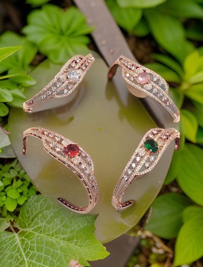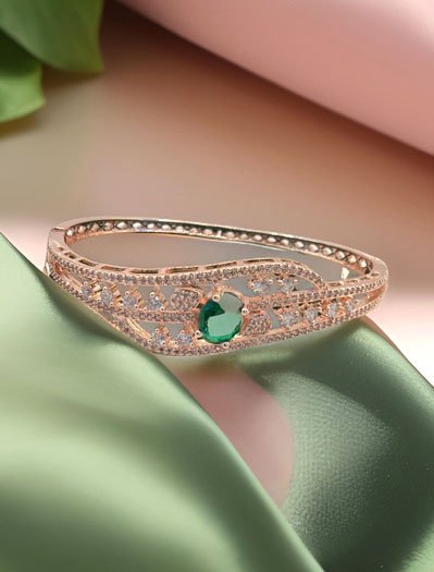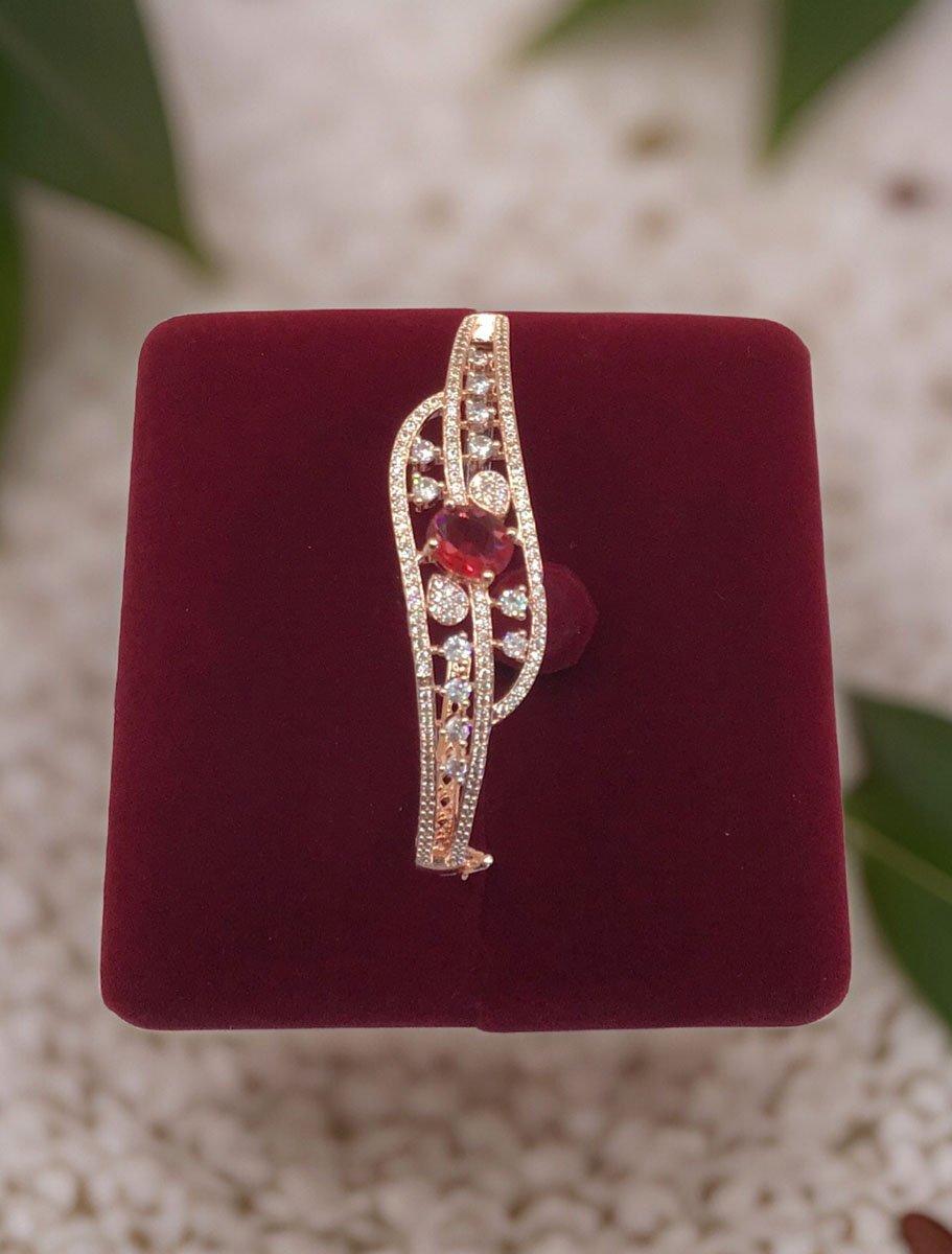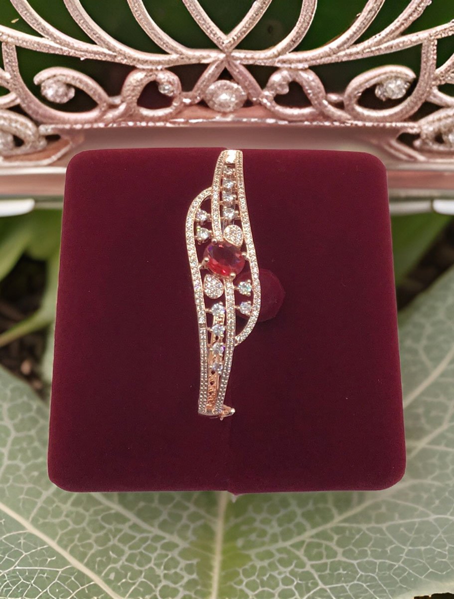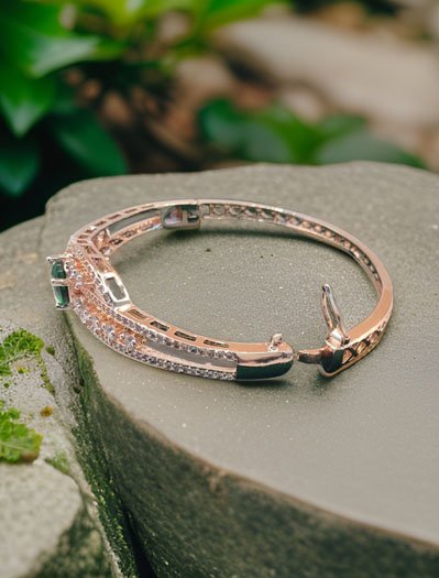 The premium quality CZ Studded Openable Rosegold Bracelet With Monalisa Stone. This stylish design bracelet is to elevate your outfit. Available in Ruby, Pink, Emerald and Clear colors.