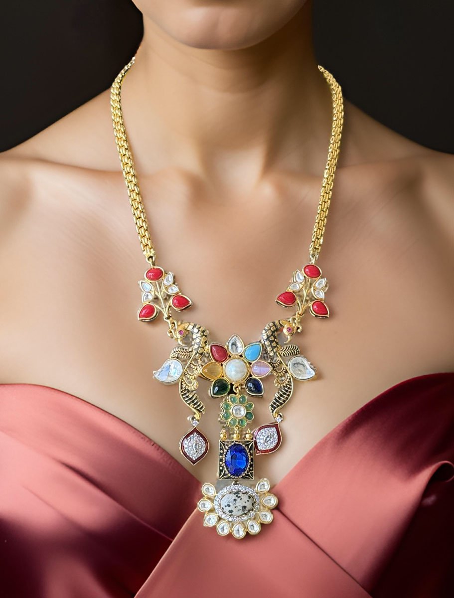 Sabyasachi Inspired Fusion Pendant Long Necklace Set