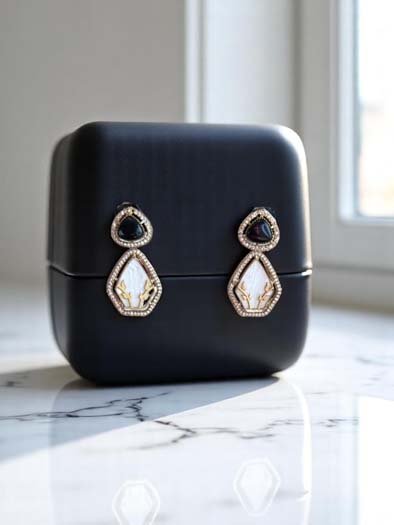 Inspire your style with one of a kind Sabyasachi designer long necklace set handcrafted in Pure Brass with Premium Kundan, Vibrant Monalisa Stones and a beautiful MOP Pendant with Amrapali enamelled work. Its timeless design and superior quality makes it an essential addition to your jewelry collection. Be the epitome of grace and charm; shop our Sabyasachi collection today. Our artisans have poured their skill and passion into creating a set that will leave admirers in awe. Elevate your look with this stunning piece that blends traditional charm with contemporary flair. Create beautiful memory for any occasion with elegant jewelry for your loved ones!!