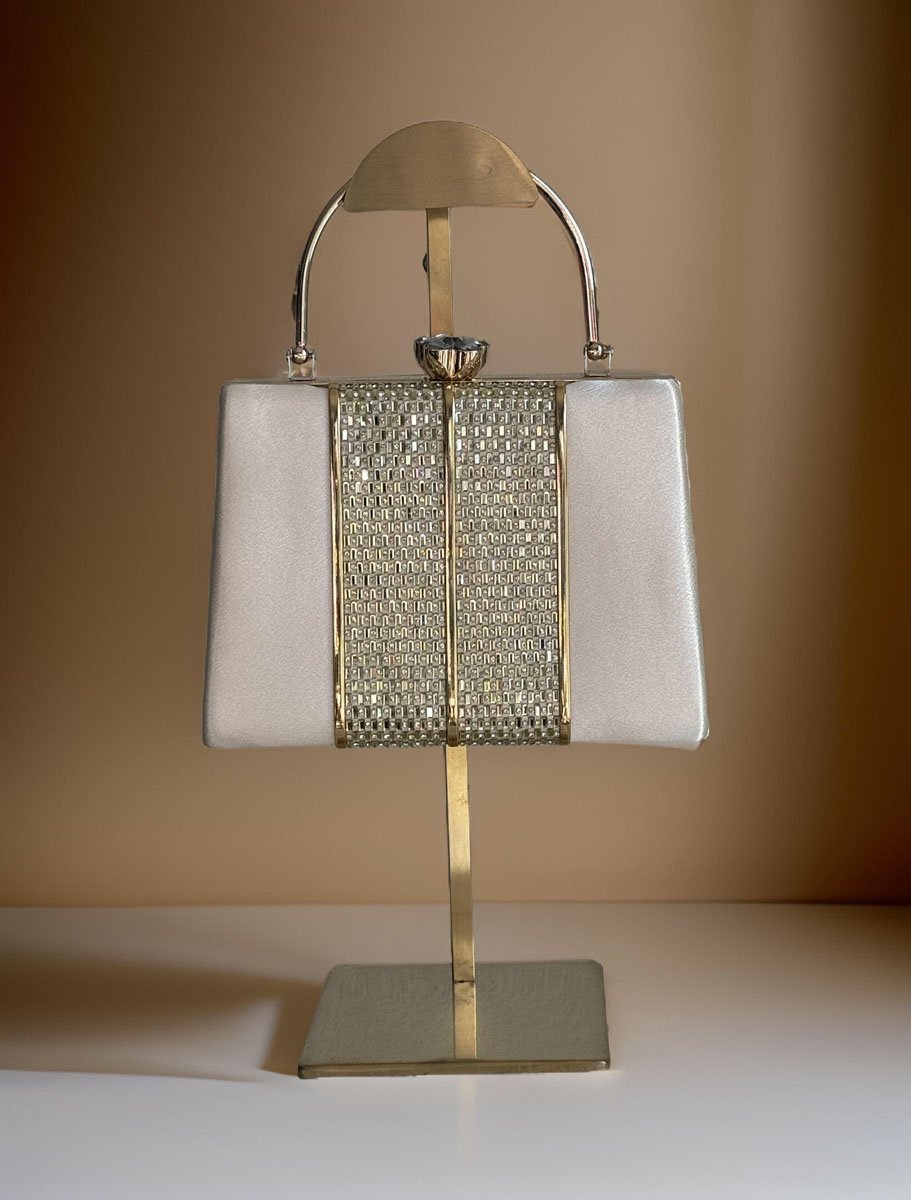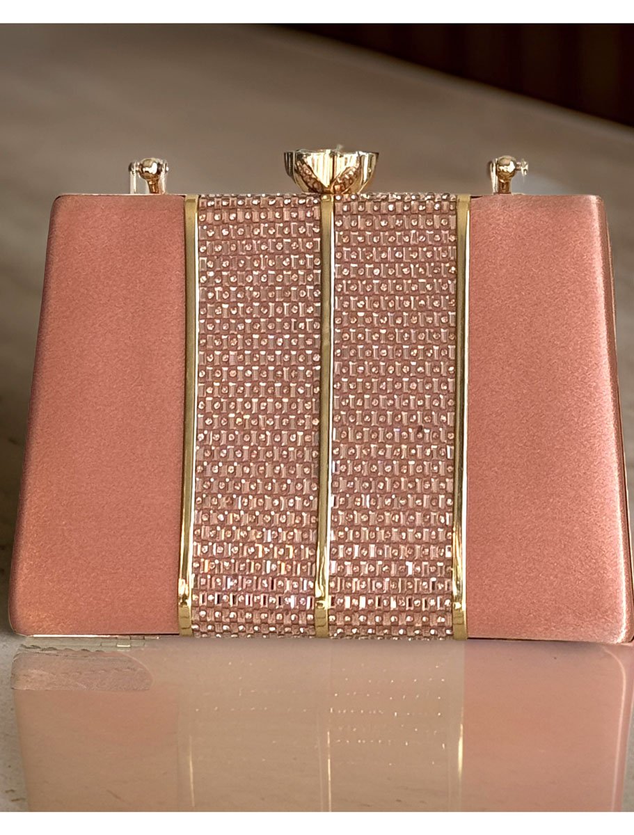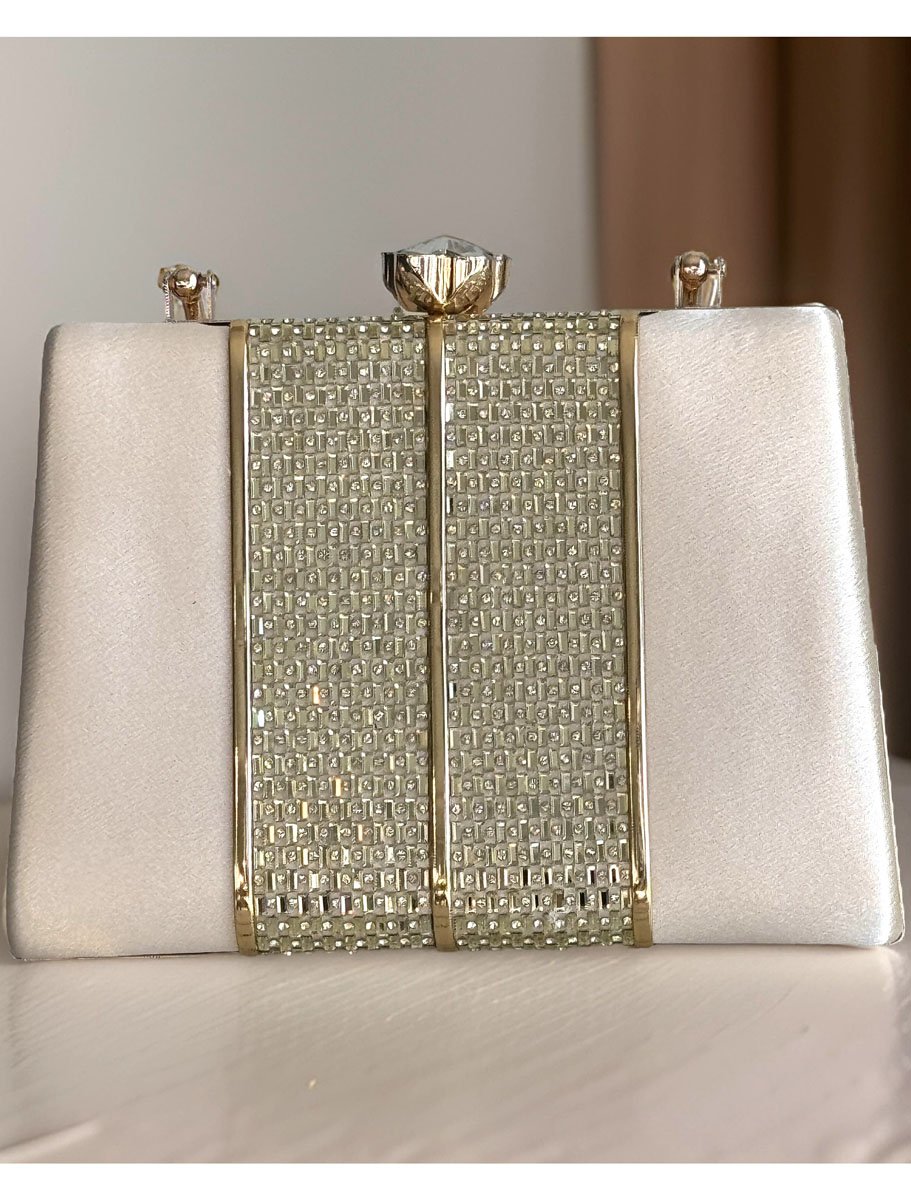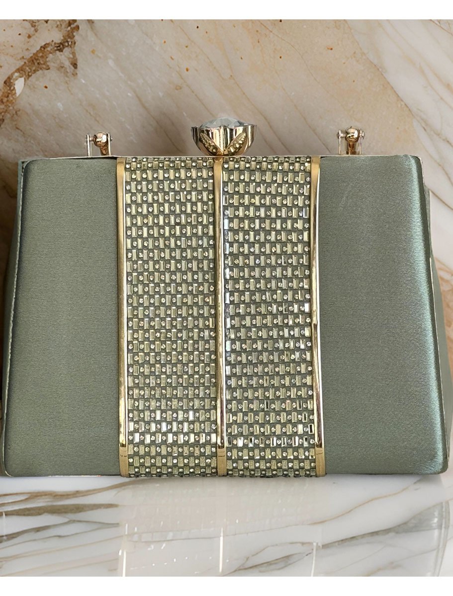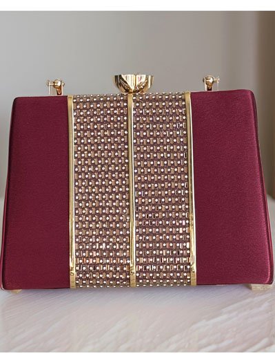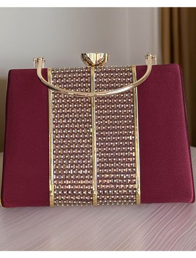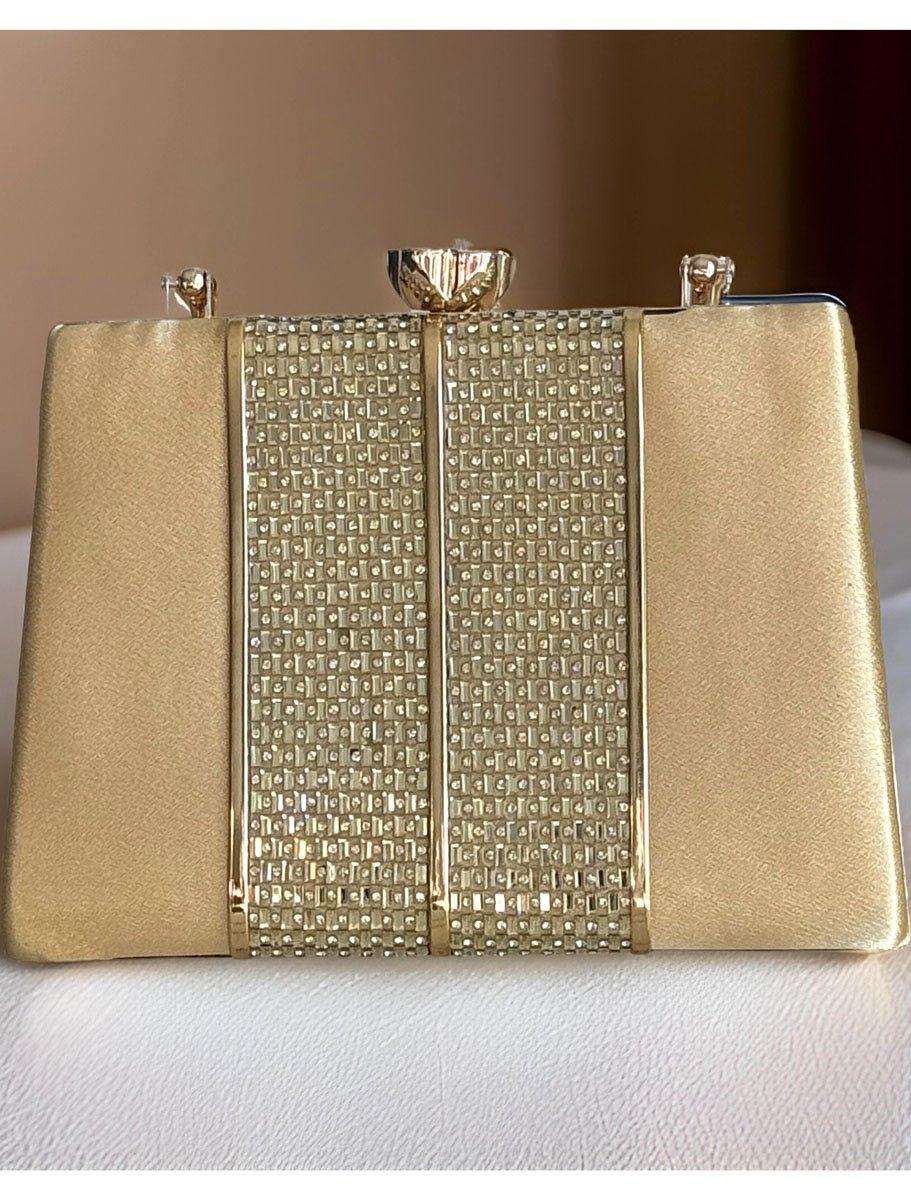Satin Evening Bag with Golden Patchwork Design