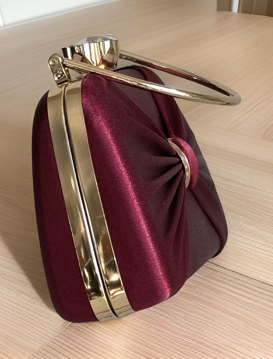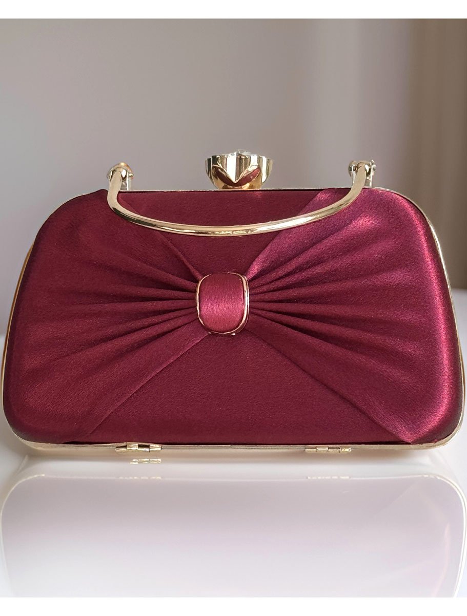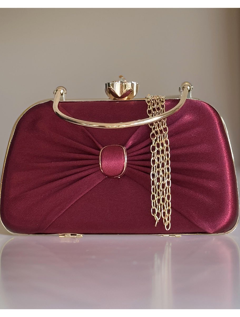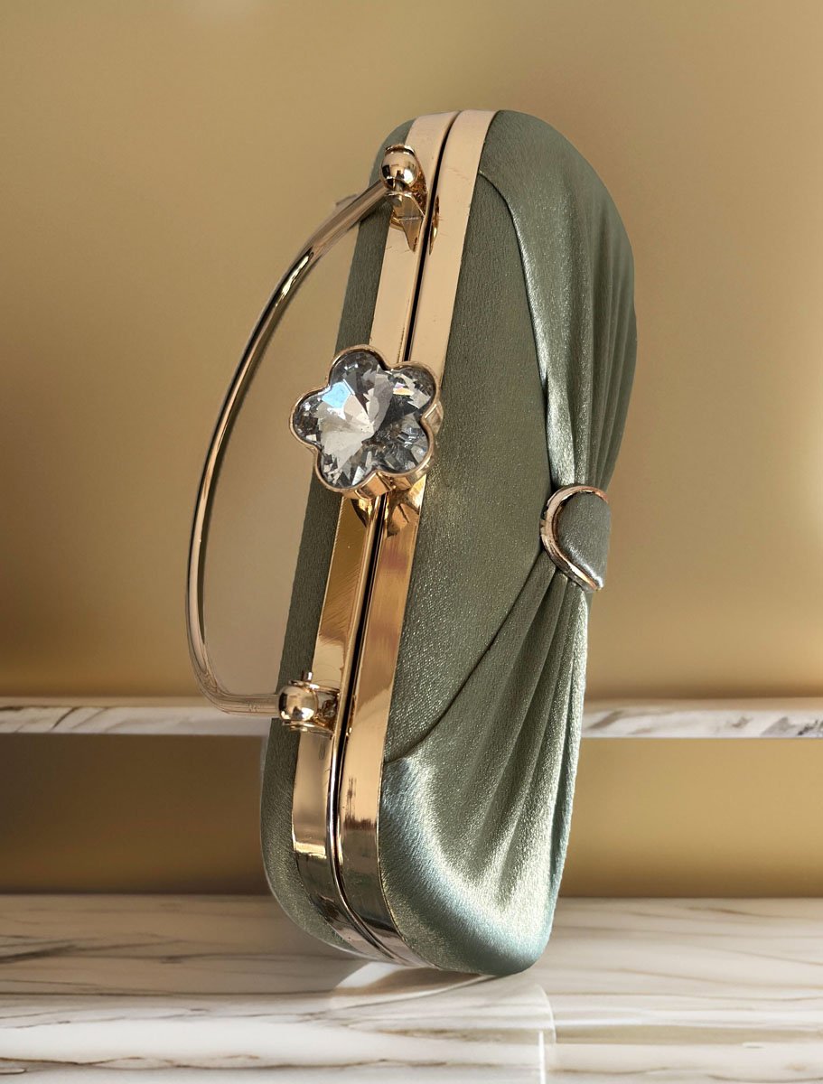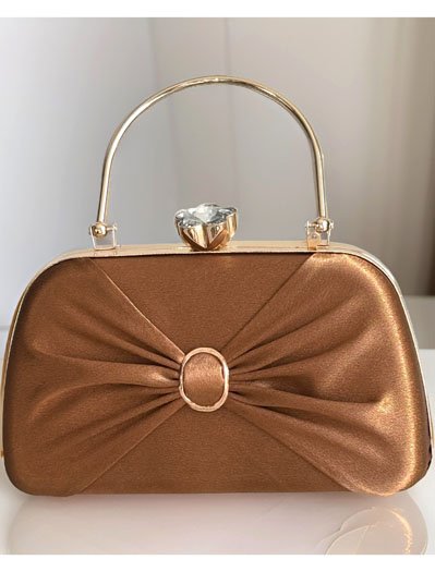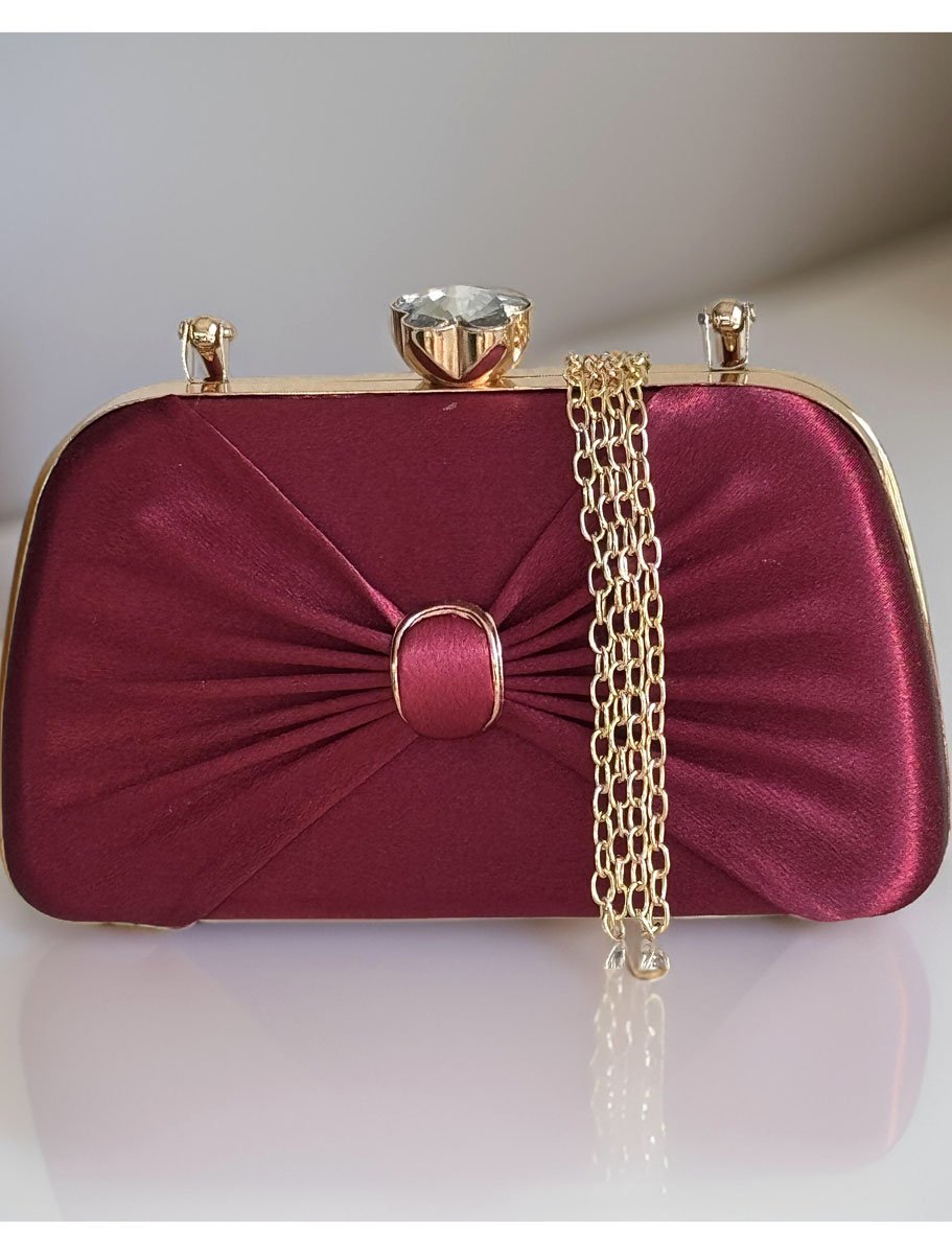This Satin Evening bag is a true gem. It's a beautiful, simple accessory for your outfit. This bag is fully covered with a plain colorful satin fabric (front with pleats and plain back) and golden accessories. It has a tight snap Glass Flower closure at the top to protect your belongings. Elegant yet stylish!! Perfect choice for wedding, prom, dinner, cocktail and night parties etc... Suits any dress type. It will be a perfect piece to complete your fashion style. It comes with 21"long golden metal chain. It is big enough to hold you things ( phone, money, keys, cards, mini mirror, lipstick etc ).