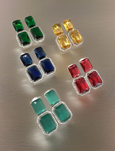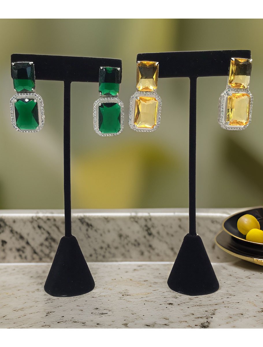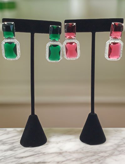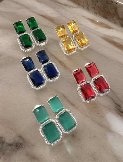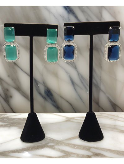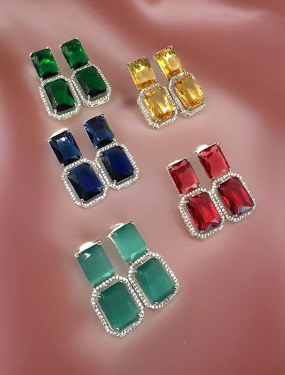 Enjoy the elegance of solid color doublate stones earrings, featuring high-quality doublate stones resembling real AD. Tiny white CZ stones surround the bottom stone, creating an exquisite look. They are ideal for party wear and come in Green, Navy Blue, Yellow, Red, and Mint Green. These earrings are a must-have for your jewelry collection.