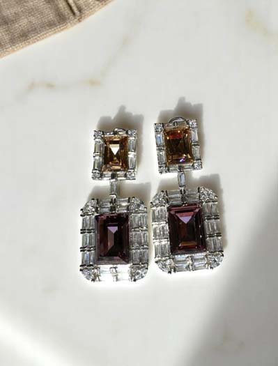 Turn up the glow with these beautiful Earrings in purple and orange hue. Sparkling and stunning, these earrings will capture your heart at first sight. Crafted to perfection, these earrings feature striking Swarovski’s signature oblong shape and exudes light from every facet. This is framed by an array of baguette step-cut crystals, all set within a double gallery construction for a truly bold look. Displaying Swarovski's savoir-faire, these earrings are a gift of elegance that can be worn time and time again. A great accessory for every day or special occasions!!