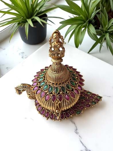 Temple Jewelry Inspired Peacock Shaped Kumkum Box
