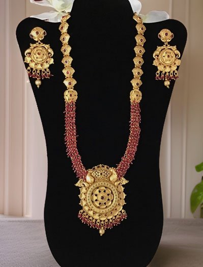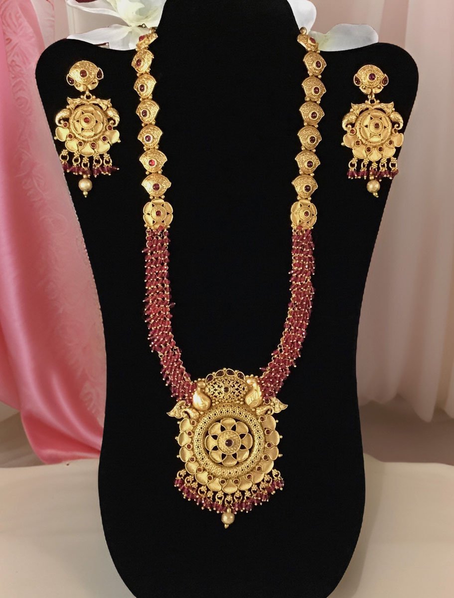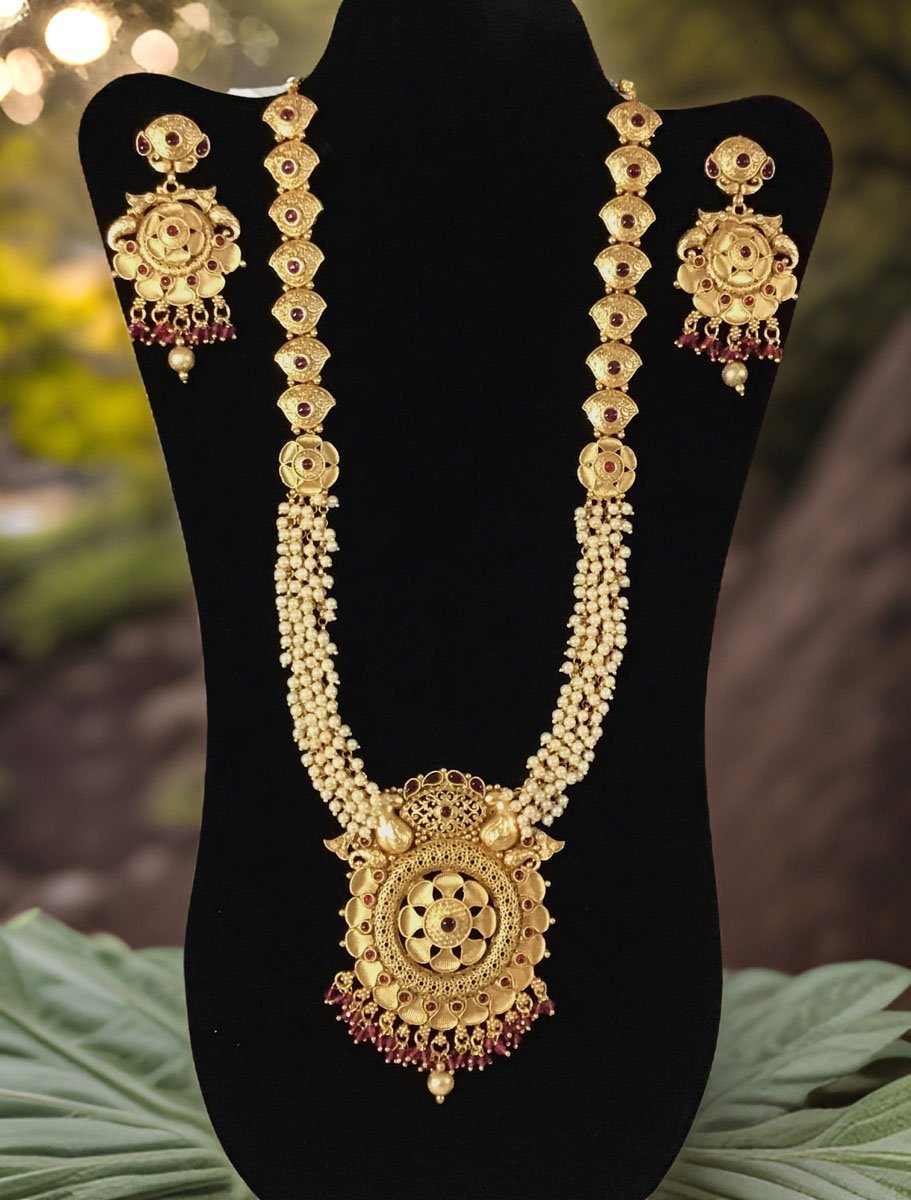 Antique Gold Matt Finish Traditional Rajwadi Long Rani Haar with earrings