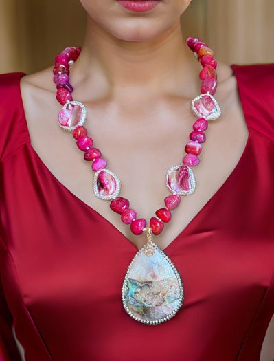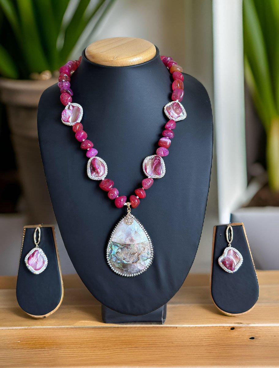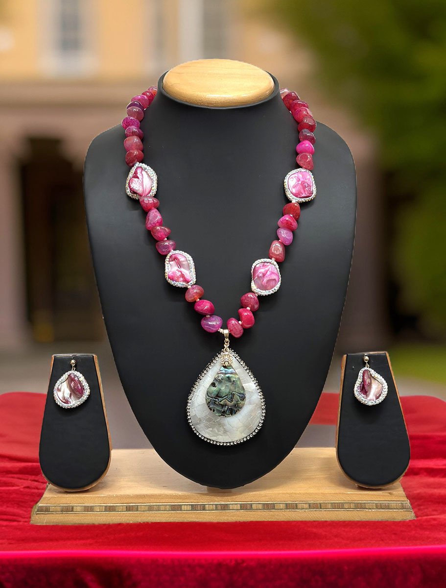 Designer Turkish Beads Mala Set with MOP Abalone Teardrop Pendant