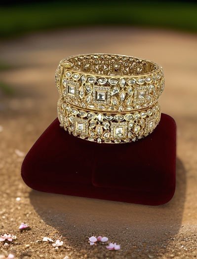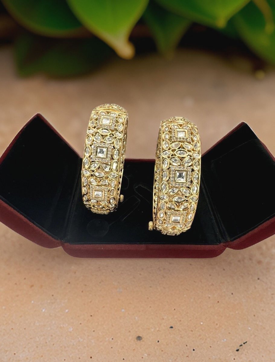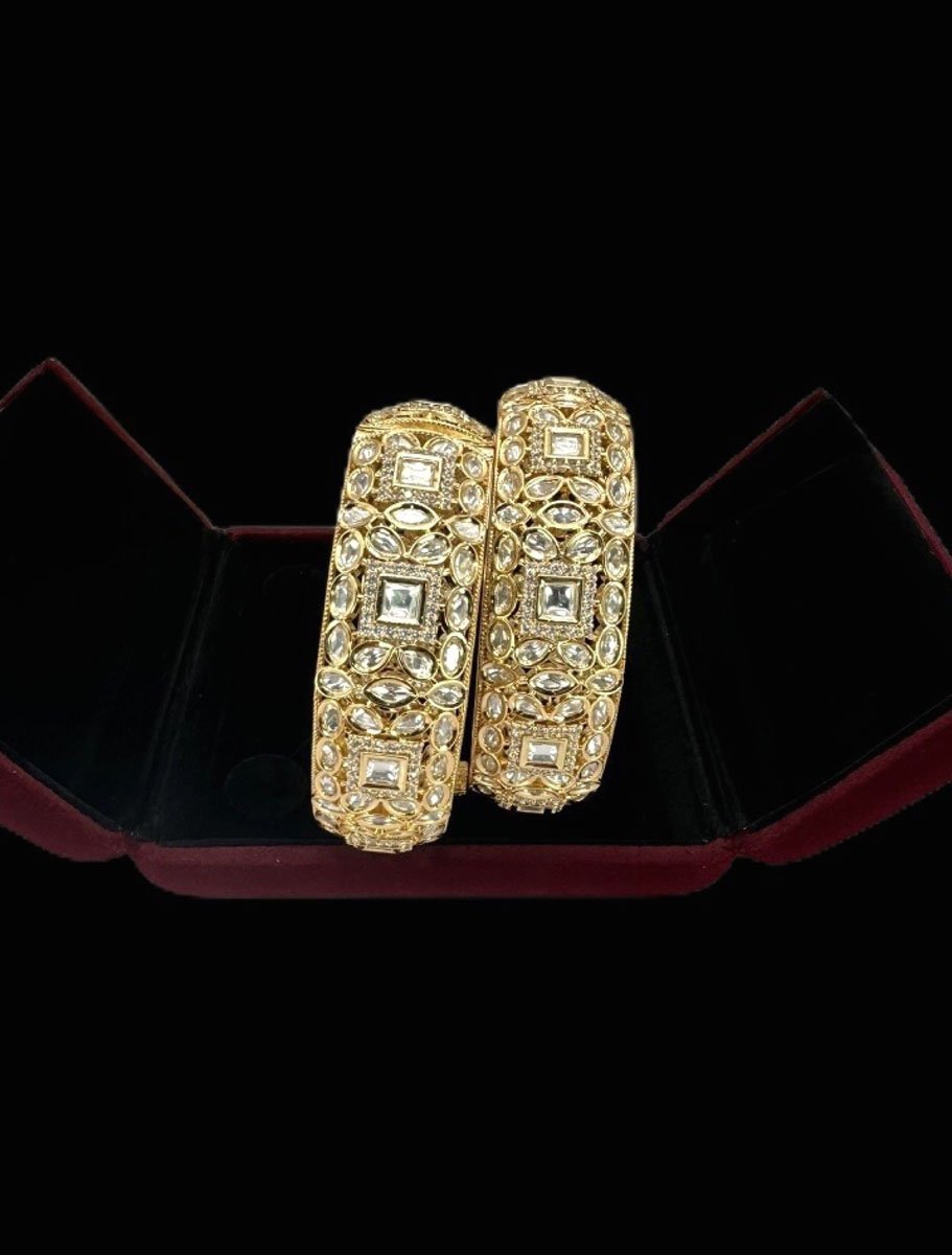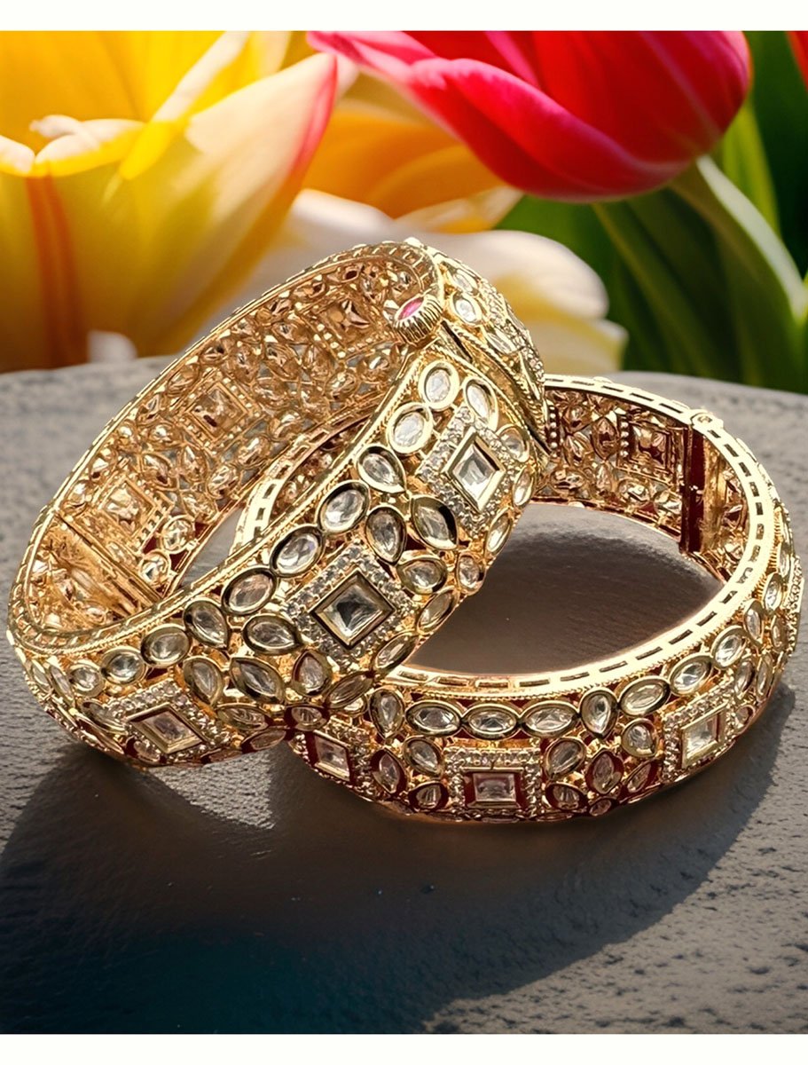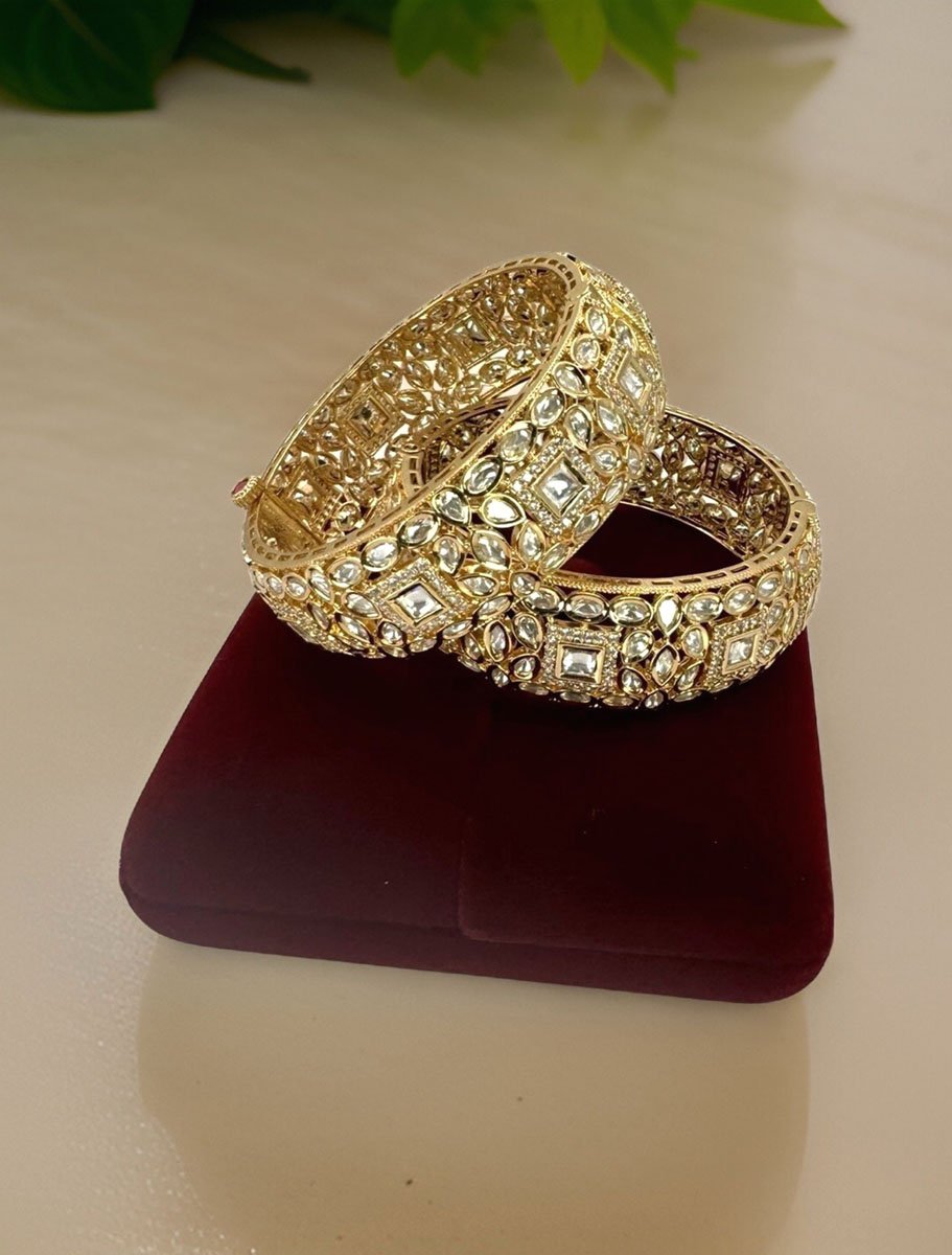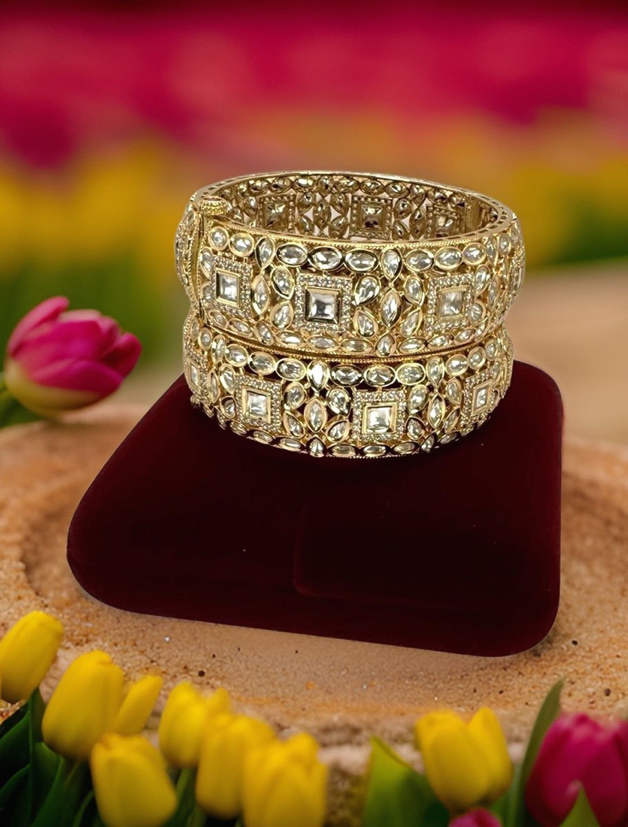 Introducing “Tyaani Inspired Premium Polki Kundan Kada in 24k Gold Polish" – an astonishing pairs of kada showcases the perfect blend of traditional and contemporary designs. Crafted with precision and care, these kada features a dazzling Polki stone in the center, surrounded by intricate Kundan work. The beauty of this kada lies in its versatility, making it ideal for weddings, festivals, or any other special occasion. With its timeless design and exceptional craftsmanship, the “Tyaani Inspired Polki Kundan Kada” is sure to become a treasured possession for years to come!! Available in 2x4 and 2x6 size.