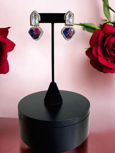 Presenting Eye-catching and unique stud style earrings with sparkling Kundan and Galaxy stones in tones of blue, green,pink and lilac. These shiny color-shifting resin studs will sparkle in the sunlight! The flakies used are color shifting so the earring will look different based on how you look at them. Perfect for everyday wear, classy enough for a night out!!